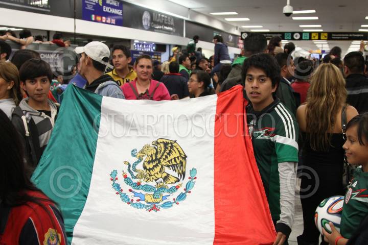 MÉXICO, 30JUNIO2014.- Al rededor de mil seguidores de la selección mexicana de fútbol abarrotaron los pasillos del área de llegadas de la terminal numero uno del AICM para recibir a los seleccionados tras su participación en el mundial de Brasil 2014. Durante algunos minutos se presentaron conatos de bronca debido a al tumulto de personas. FOTO: SAÚL LÓPEZ /CUARTOSCURO.COM