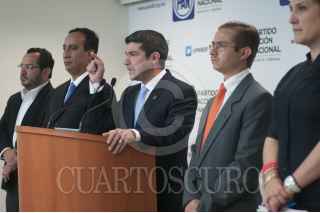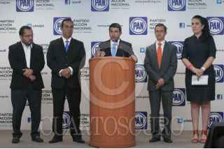 MÉXICO, D.F., 01JULIO2014.- Mauricio Tabe, Presidente del Partido Acción Nacional en el Distrito Federal, encabezó una conferencia de prensa en compañía de los panistas Jorge Raúl, Rafael Calderón, Santiago Torreblanca y Kenia López, para dar el posicionamiento del partido sobre las medidas del Hoy No Circula, y sobre el tema de Sergio Eguren Cornejo y Rafel Medina Pederzini, miembros del Comité Directivo Regional del PAN-DF, quienes agredieron a una mujer y a su acompañante en Brasil, después del partido de México contra Holanda. FOTO: DIEGO SIMÓN SÁNCHEZ /CUARTOSCURO.COM