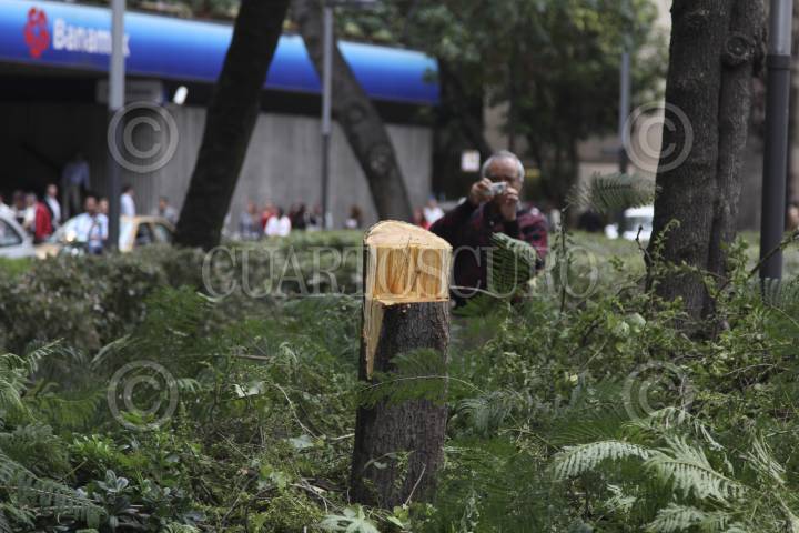 MÉXICO, D.F., 01JULIO2014.- Un trabajador resultó lesionado tras caerle un árbol en la cabeza en el momento que realizaba labores de poda de ramas en el Paseo de la Reforma. FOTO: SAÚL LÓPEZ /CUARTOSCURO.COM