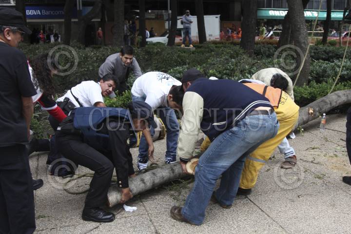 MÉXICO, D.F., 01JULIO2014.- Un trabajador resultó lesionado tras caerle un árbol en la cabeza en el momento que realizaba labores de poda de ramas en el Paseo de la Reforma. FOTO: SAÚL LÓPEZ /CUARTOSCURO.COM
