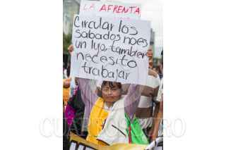 MÉXICO, D.F., 01JULIO2014.- Comerciantes se manifestaron en calles del Centro de la Ciudad en contra del Hoy No Circula Sabatino, el cual comienza a aplicarse esta semana y afecta a las personas que no pueden renovar sus automóviles. FOTO: ISAAC ESQUIVEL /CUARTOSCURO.COM