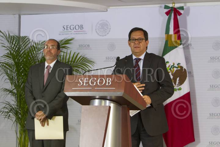 MÉXICO, D.F. 01JULIO2014.- Roberto Campa Cifrian, subsecretario de Gobernación, acompañado de Elías Rafful, titular del Centro Nacional de Prevención del Delito y Participación Ciudadana ofrecieron una conferencia conjunta en las instalaciones de la Secretaria de Gobernación. FOTO: GUILLERMO PEREA /CUARTOSCURO.COM