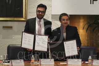 MÉXICO, D.F., 01JULIO2014.- Gabriel Oswaldo Contreras Saldívar, comisionado presidente del Instituto Federal de Telecomunicaciones (IFT) y Yoloxóchitl Bustamante Díez, directora general del Instituto Politécnico Nacional, durante la firma de convenio general de colaboración entre las dos instituciones. FOTO: ADOLFO VLADIMIR /CUARTOSCURO.COM