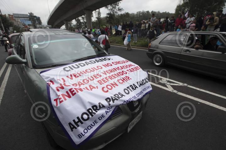 MÉXICO, D.F., 01JULIO2014.- Automovilistas inconformes con la implementación de la nueva reglamentación del Programa Hoy No Circula sabatino, que fue puesto en marcha a partir de este martes, realizaron una manifestación sobre Avenida Periférico Sur, a la altura de la desviación a la carretera Picacho-Ajusco. Después de horas de intenso embotellamiento y tras varios discusiones entre inconformes y policías la vialidad fue liberada a la altura de Insurgentes Sur. FOTO: CUARTOSCURO.COM