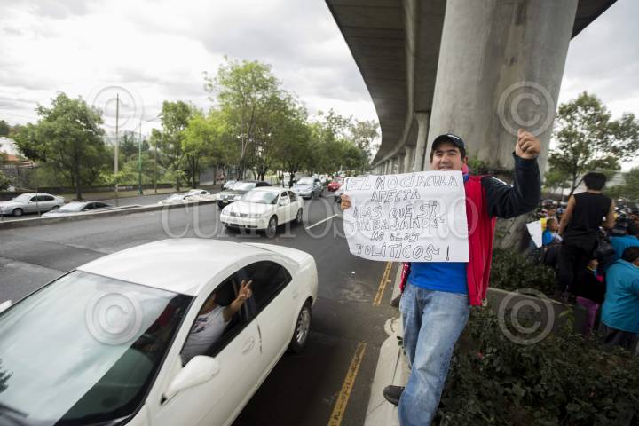 MÉXICO, D.F., 01JULIO2014.- Automovilistas inconformes con la implementación de la nueva reglamentación del Programa Hoy No Circula sabatino, que fue puesto en marcha a partir de este martes, realizaron una manifestación sobre Avenida Periférico Sur, a la altura de la desviación a la carretera Picacho-Ajusco. Después de horas de intenso embotellamiento y tras varios discusiones entre inconformes y policías la vialidad fue liberada a la altura de Insurgentes Sur. FOTO: CUARTOSCURO.COM