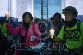MÉXICO, D.F., 01JULIO2014.- Ciclistas realizaron una rodada nocturna que culminó en el Monumento a la Revolución para protestar por el caso del ciclista que murió tras ser atropellado por una agente de tránsito frente al Mercado de Sonora el 29 de junio del 2014. FOTO: IVÁN STEPHENS /CUARTOSCURO.COM