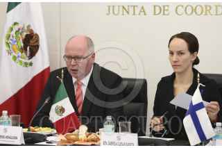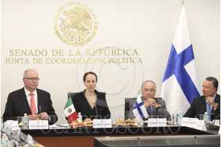 MÉXICO, D.F., 02JULIO2014.- La senadora del Partido de Acción Nacional, Gabriela Cuevas Barrón, se reunió con el Sr. Eero Heinaluoma, presidente del Parlamento de Finlandia y con los senadores Ernesto Ruffo, Juan Carlos Romero y Víctor Hermosillo. FOTO: CUARTOSCURO.COM