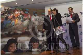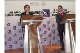 MÉXICO, D.F., 02JULIO2014.- Los integrantes del gabinete presidencial Roberto Calleja, Rosario Robles y Eduardo Sánchez, durante la conferencia de prensa para hablar sobre los resultados del programa "Sin Hambre Cruzada Nacional", el cual cumplió un año de entrada en vigor, en el Club Naval Norte. FOTO: MOISÉS PABLO /CUARTOSCURO.COM