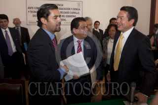 MÉXICO, D.F., 02JULIO2014.- Sergio Israel Eguren Cornejo, ex asambleísta panista y funcionario de la delegación Benito Juárez, fue cesado de su cargo después del escándalo que provocó su detención durante su visita a brasil por el mundial 2014. En la imagen del 12 de octubre de 2011, acompaña al Mario Delgado Carrillo, cuando fungía como titular de Educación Pública en el Distrito Federal, durante la presentación de su informe de actividades ante las comisiones unidas de Educación Ciencia y Tecnología de la Asamblea Legislativa. FOTO: ARCHIVO /GUILLERMO PEREA /CUARTOSCURO.COM