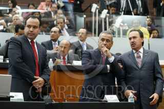 MÉXICO, D.F., 03JULIO2014.- Los senadores panistas Marcela Torres Peimbert, Ernesto Rufo Appel y Javier Lozano, durante la sesión de la Comisión Permanente, este día la Cámara Alta avanzó en el dictamen de las leyes secundaria de la llamada "Reforma Energética". FOTO: CUARTOSCURO.COM