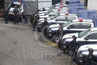 CUERNVACA, MORELOS, 03AGOSTO2014.- El alcalde de Cuernavaca, Jorge Morales Barud entregó esta tarde 12 patrullas a elementos de la policía metropolitana durante una ceremonia en la que se realizaron los honores a la bandera. Durante el acto estuvo presente René Hernández Salgado, titular de la Secretaría de Seguridad Ciudadana capitalina. FOTO: PATRICIA MORALES /CUARTOSCURO.COM
