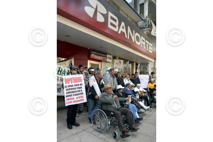 MEXICO, D.F. 19ENERO2006.- Integrantes del Barzón clausuraron de manera simbolica las oficinas del banco Banorte ubicadas en avenida Reforma. FOTO: Pedro Marrufo/CUARTOSCURO.COM