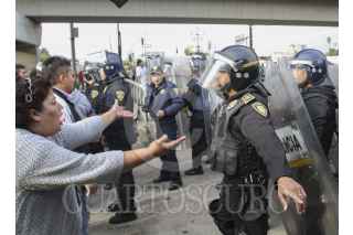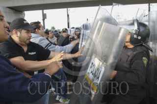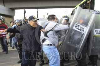 MÉXICO, D.F., 04JULIO2014.- Por varias horas, decenas de vecinos de Ticoman y de los alrededores de la colonia CTM Risco, bloquearon de manera intermitente las calles en protesta por el Hoy No Circula, lo que provoco un enfrentamiento con granaderos dejando un saldo preliminar de 7 detenidos y 2 lesionados FOTO: LUIS CARBAYO /CUARTOSCURO.COM