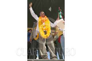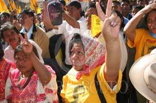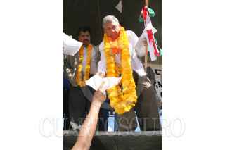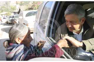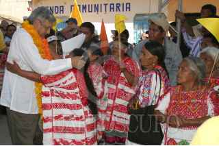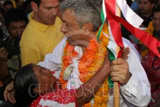 METLATONOC, GUERRERO 19ENERO2006.- El candidato de la coalición Por el bien de todos, Andrés Manuel López Obrador saluda a una indigena mixteca antes del mitin con el que dio comienzo a su campaña como abanderado del PRD-PT-Convergencia en Metlatónoc, Guerrero el segundo municipio más pobre de américa latina FOTO: Miguel Dimayuga/CUARTOSCURO.COM