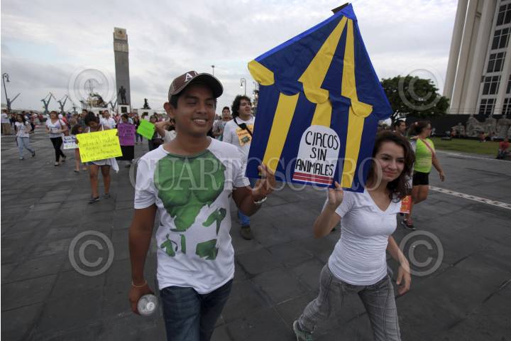 VERACRUZ, VERACRUZ., 06JULIO2014.- Decenas de activistas protestaron en las principales calles del puerto para exigir a las autoridades una modificación al código penal que prohiba los circos con animales. Los manifestantes también se postularon en contra de los espectáculos del acuario de Veracruz donde se exhiben delfines y próximamente pingüinos. FOTO: FÉLIX MÁRQUEZ / CUARTOSCURO.COM