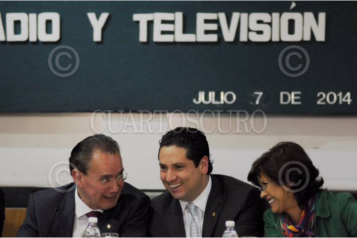 MÉXICO, D.F., 07JULIO2014.- Los diputados Federico González Luna, ex abogado de Televisa y accionista en diversas empresas de telecomunicaciones, Hector Gutiérrez de la Garza, y Homero Ricardo Niño de Rivera, votan durante la sesión de las comisiones unidas de Comunicaciones y Radio y Televisión donde se debate la minuta del Senado con la Ley Federal de Telecomunicaciones y Radiodifusión y la Ley del Sistema Público de Radiodifusión y Telecomunicaciones. FOTO: IVÁN STEPHENS /CUARTOSCURO.COM