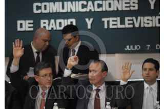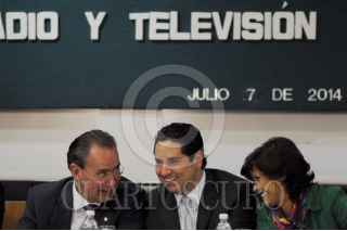 MÉXICO, D.F., 07JULIO2014.- Los diputados Federico González Luna, ex abogado de Televisa y accionista en diversas empresas de telecomunicaciones, Hector Gutiérrez de la Garza, y Homero Ricardo Niño de Rivera, votan durante la sesión de las comisiones unidas de Comunicaciones y Radio y Televisión donde se debate la minuta del Senado con la Ley Federal de Telecomunicaciones y Radiodifusión y la Ley del Sistema Público de Radiodifusión y Telecomunicaciones. FOTO: IVÁN STEPHENS /CUARTOSCURO.COM