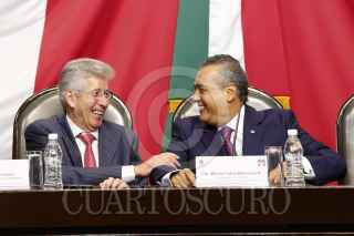 MÉXICO, D.F., 08JULIO2014.- Gerardo Ruíz Esparza, secretario de Comunicaciones y Transportes y Manlio Fabio Beltrones, coordinador de los diputados del PRI, se reunieron en privado. FOTO: CUARTOSCURO.COM