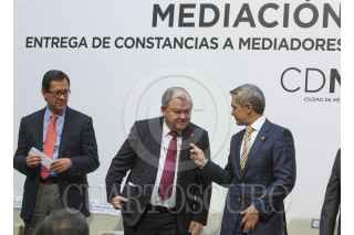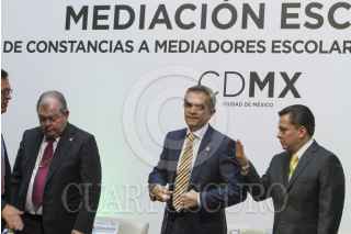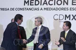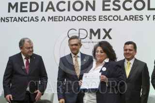 MÉXICO, D.F., 08JULIO2014.- Miguel Ángel Mancera, jefe de Gobierno del D.F. acompañado de Roberto Campa Cifrián, subsecretario de gobernación, Edgar Elías Azar, Presidente del Tribunal Superior de Justicia. y del Consejo de la Judicatura del Distrito Federal y Manuel Granados Covarrubias, presidente de la Asamblea Legislativa del D.F. encabezo la ceremonia de entrega de reconocimientos a Mediadores Escolares. FOTO: GUILLERMO PEREA /CUARTOSCURO.COM