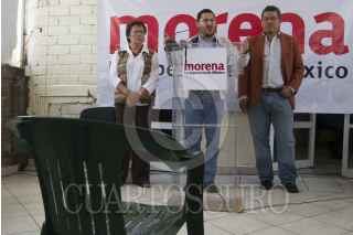 MÉXICO, D.F., 08JULIO2014.- Marti Batres, Presidente Nacional de Morena, acompañado de Bertha Lujan y Froilán Yescas, durante la conferencia en las instalaciones de Morena. FOTO: GUILLERMO PEREA /CUARTOSCURO.COM