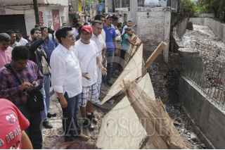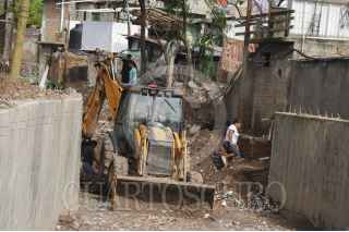 CHILPANCINGO, GUERRERO, 08JULIO2014.- Habitantes del callejón Tío Nacho bloquearon las laterales de la desembocadura del río Huacapa para exigir a las autoridades de Conagua, agilicen la construcción del encauzamiento de la barranca de Alpuyeca. La construcción, aseguran los habitantes, “va muy lenta”, y tienen miedo de que las lluvias los afecten de nuevo. FOTO: JOSÉ I. HERNÁNDEZ /CUARTOSCURO.COM