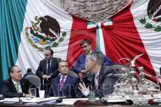 MÉXICO, D.F., 08JULIO2014.- Los diputados Héctor Gutiérrez de la Garza, Luis Alberto Villareal, Manlio Fabio Beltrones y José González Morfín, durante la sesión en la Cámara de Diputados donde se aprobó las leyes secundarias de la Reforma Energética. FOTO: CUARTOSCURO.COM