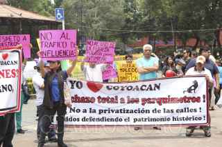 MÉXICO, D.F., 10JULIO2014.- Locatarios del mercado Coyoacan, marcharon de la avenida Miguel Ángel de Quevedo hacia la sede delegacional para exigir un alto a intimidaciones por parte de verificadores de la demarcación. FOTO: SAÚL LÓPEZ /CUARTOSCURO.COM