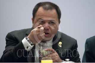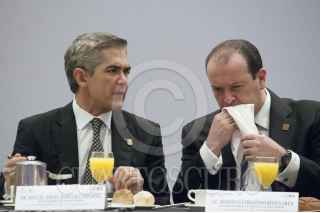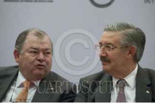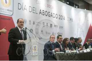 MÉXICO, D.F., 11JULIO2014.- Edgar Elías Azar, magistrado presidente del Tribunal Superior de Justicia del DF y Luis María Aguilar Morales, ministro de la Suprema Corte de Justicia de la Nación, durante el desayuno que ofreció el gobierno capitalino a decenas de abogados para conmemorar su día. FOTO: DIEGO SIMÓN SÁNCHEZ /CUARTOSCURO.COM