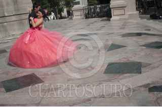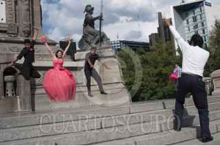 MÉXICO, D.F., 13JULIO2014.- Una quinceañera realiza una sesión de fotos al pie del Ángel de la Independencia con el fotógrafo Saúl Guzmán. FOTO: IVÁN STEPHENS /CUARTOSCURO.COM