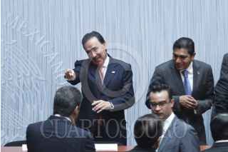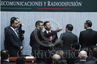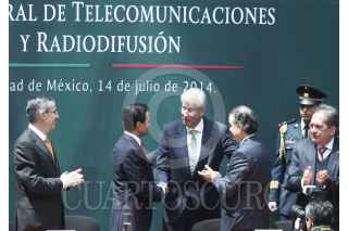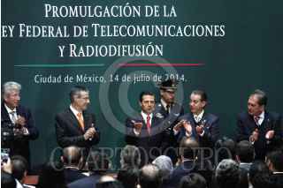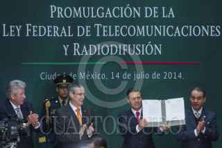 MÉXICO, D.F., 14JULIO2014.- Los empresarios Claudio X. González, Carlos Slim Domit, y Francisco Gil díaz, durante la promulgación de la Ley Federal de Telecomunicaciones y Radiodifusión en el Palacio Nacional. FOTO: ISAAC ESQUIVEL /CUARTOSCURO.COM
