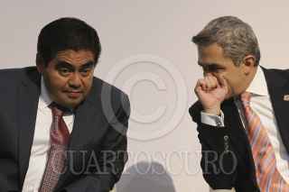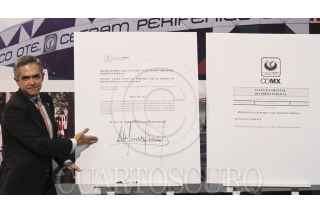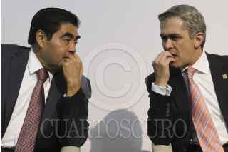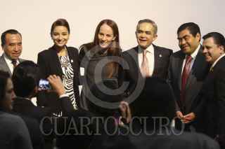 MÉXICO, D.F., 14JULIO2014.- Rufino H León Tovar, secretario de Movilidad, Laura Ballesteros, Asambleísta por el PAN, Gabriela Cuevas, senadora por el PAN, Miguel Ángel Mancera, jefe de gobierno del Distrito Federal, Miguel G. Barbosa, coordinador de la bancada del PRD en el Senado de la República, Manuel Granados, presidente de la Comisión de Gobierno del la Asamblea Legislativa, durante la "Promulgación de la Ley de Movilidad", además de anunciar la renovación del transporte público, sin mencionar algún tiempo para ello. FOTO: ADOLFO VLADIMIR /CUARTOSCURO.COM