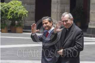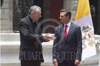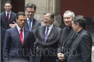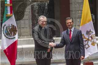 MÉXICO, D.F., 14JULIO2014.- Enrique Peña Nieto, presidente de la República, y Pietro Parolin, secretario de estado de la Santa Sede, posan para los fotógrafos a su llegada a Palacio Nacional, donde sostuvieron una reunión privada. FOTO: ISAAC ESQUIVEL /CUARTOSCURO.COM