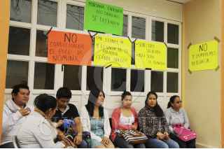 CHILPANCINGO, GUERRERO, 15JULIO2014.- Integrantes del programa Alfabetizar para Humanizar de Guerrero Cumple, tomaron las oficinas de la coordinación del programa ubicada en calle Madero, para exigir a Mariana García Guillen, les pague las dos quincenas de junio que les adeudan así como su finiquito. FOTO: JOSÉ I. HERNÁNDEZ /CUARTOSCURO.COM