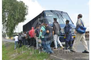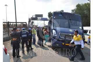 MÉXICO D.F; 15JULIO2014.- La falla en el sistema eléctrico del Tren ligero de la línea “A”, tuvo que ser apoyado con transportes de la SSP y Patrullas, que realizaron el recorrido de este transporte, en lo que se realizaron las reparaciones correspondientes. FOTO: LUIS CARBAYO /CUARTOSCURO.COM