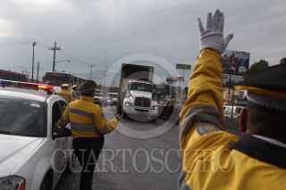 MÉXICO, D.F. 16JULIO2014.- Policías de transito de la SSP-DF, realizaron un operativo en todos los accesos a la ciudad para no permitir la circulación en avenidas principales a camiones de carga de las 07:00 a las 09:00 horas, como lo dispuso el Gobierno del Distrito Federal con el nuevo plan de movilidad. FOTO: SAÚL LÓPEZ /CUARTOSCURO.COM