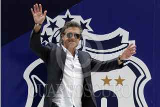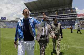 PUEBLA, PUEBLA, 16JULIO2014.- El ex-seleccionado Cuauhtémoc Blanco durante la presentación del plantel del Puebla de la Franja para el Torneo Apertura 2014 de la Liga MX en el estadio Cuahutémoc. FOTO: HILDA RÍOS/ CUARTOSCURO.COM