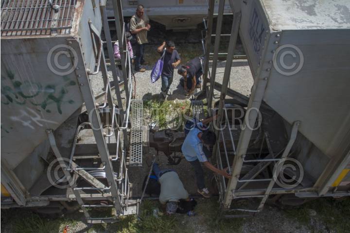 ARRIAGA, CHIAPAS, 16JULIO2014.- Cientos de migrantes, abordan el tren en la estación de Arriaga con destino a la frontera norte del país. FOTO: ENRIQUE ORDÓÑEZ /CUARTOSCURO.COM