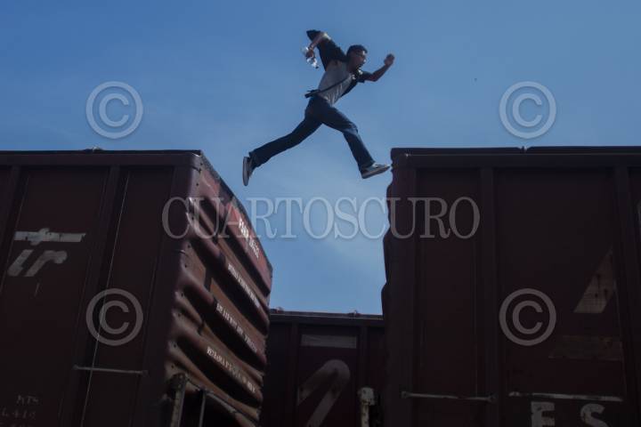 ARRIAGA, CHIAPAS, 16JULIO2014.- Cientos de migrantes, abordan el tren en la estación de Arriaga con destino a la frontera norte del país. FOTO: ENRIQUE ORDÓÑEZ /CUARTOSCURO.COM