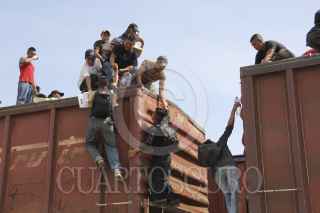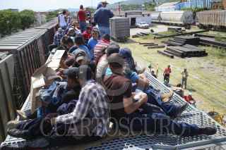 ARRIAGA, CHIAPAS, 16JULIO2014.- Cientos de migrantes principalmente de Centroamerica como Honduras, El Salvador y Guatemala, abordan el tren de carga con el que esperan llegar al norte del país para alcanzar el sueño americano, a pesar del anunció del Gobierno de México para impedir que los migrantes aborden el tren. FOTO: ELIZABETH RUIZ /CUARTOSCURO.COM