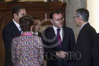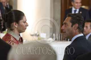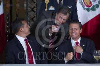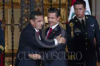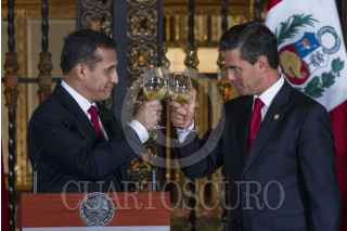 MÉXICO, D.F., 17JULIO2014.- Enrique Peña Nieto, presidente de México, y su similar de Perú, Ollanta Humala, en Palacio Nacional, durante la comida que se ofreció en el marco de la visita del peruano a nuestro país. En la imagen, con José Antonio Meade, titular de SRE. FOTO: ISAAC ESQUIVEL /CUARTOSCURO.COM