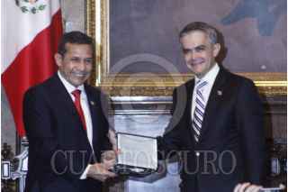 MÉXICO, D.F., 18JULIO2014.- Ollanta Humala, presidente del Perú, recibió las llaves de la ciudad por parte del Jefe de Gobierno Miguel Ángel Mancera, en salon de cabildos del Antiguo Palacio del Ayuntamiento. FOTO: MOISÉS PABLO /CUARTOSCURO.COM