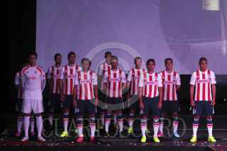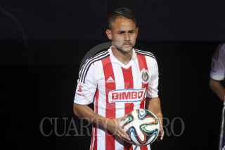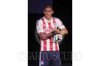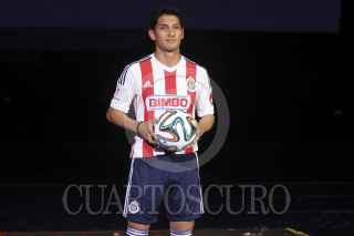 ZAPOPAN, JALICO, 18JULIO2014.- Esta noche en el Estadio Omnilife se llevo a cabo la presentación oficial del nuevo Jersey con el que jugaran las Chivas de Guadalajara a partir de este Torneo Apertura 2014 de la Liga MX, También fueron presentados los refuerzos para ya mencionado torneo. En la imagen el jugador Carlos Salcido como refuerzo del Chivas. FOTO: FERNANDO CARRANZA GARCIA /CUARTOSCURO.COM