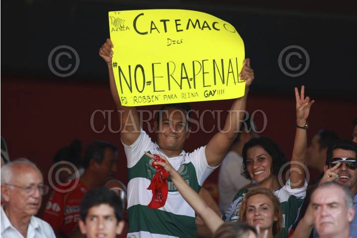BOCA DEL RÍO, VERACRUZ, 19JULIO2014.- Acciones del encuentro entre Tiburones Rojos de Veracruz y Santos de la Laguna, los cuales vencieron a los locales 1 por 0 en el primer encuentro del torneo apertura 2014. Por momentos los ánimos se calentaron en la tribuna y en las calles donde se presentaron incidentes de violencia. FOTO: FÉLIX MÁRQUEZ /CUARTOSCURO.COM