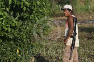XAYAKALAN, OSTULA, AQUILA MICHOACÁN, 20JULIO2014.- La organización de la comunidad en su lucha por la tierra, reanudó su marcha en febrero de este año después de que en junio de 2009 los comuneros activaron su Policía Comunitaria y retomaron el lugar conocido como La Canaguancera (renombrado Xayakalan), la cual enfrentó una ola de asesinatos y desapariciones sobre todo contra miembros de la guardia tradicional o de los bienes comunales que estableció un clima de terror y obligó al desplazamiento de familias enteras. Los nahuas han poblado poco a poco la porción de su territorio que se extiende hacia la costa michoacana, a pesar de vivir en una situación llena de presión y amenazas para desistir en luchar por su tierra, con la muerte ya de 32 indígenas y la desaparición de seis más, desde el año 2009. FOTO: JUAN JOSÉ ESTRADA SERAFÍN/CUARTOSCURO.COM