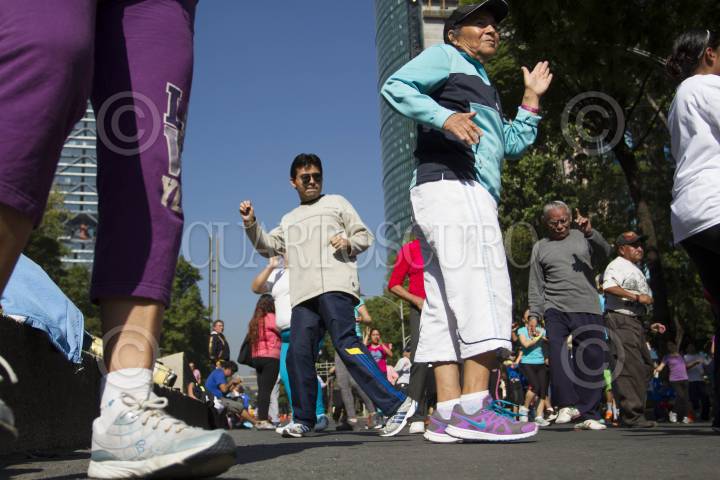 MÉXICO, D.F., 20JULIO2014.- Miles de personas participan en el Paseo Ciclista sobre avenida Reforma y Juárez, a pesar del fuerte calor y la alta radiación solar que se registró este domingo. FOTO: ISAAC ESQUIVEL /CUARTOSCURO.COM