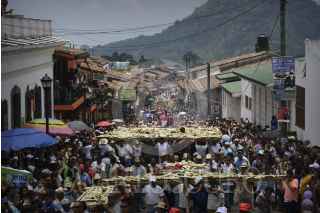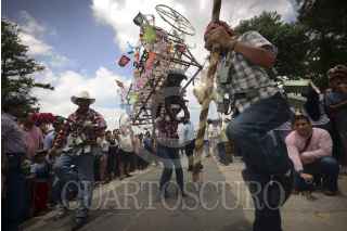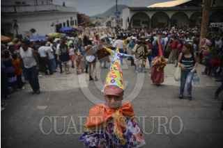 XALAPA, VERACRUZ, 20JULIO14.- Cientos de personas se dieron cita para presenciar la fiesta patronal en honor a la virgen de María Magdalena. Con toros "encuhetados" y disfrazados de payasos y otros atuendos los xiqueños entre niños y adultos conservan su tradición bailando y cargando un arco de madera con un peso de tonelada y media y 18 metros de altura, adornado con flores y conchas incrustadas, el arco es trasladado por decenas de hombres desde la parroquia de Cristo Rey hasta la catedral de María Magdalena para agradecerle según sus creencia a la santa patrona del municipio por sus milagros realizados desde que culmina la festividad hasta el inicio de la misma. FOTO: RUBÉN ESPINOSA / CUARTOSCURO.COM