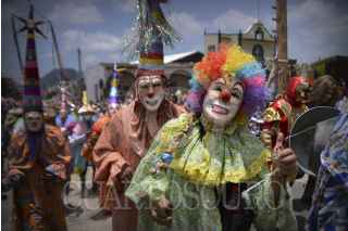 XALAPA, VERACRUZ, 20JULIO14.- Cientos de personas se dieron cita para presenciar la fiesta patronal en honor a la virgen de María Magdalena. Con toros "encuhetados" y disfrazados de payasos y otros atuendos los xiqueños entre niños y adultos conservan su tradición bailando y cargando un arco de madera con un peso de tonelada y media y 18 metros de altura, adornado con flores y conchas incrustadas, el arco es trasladado por decenas de hombres desde la parroquia de Cristo Rey hasta la catedral de María Magdalena para agradecerle según sus creencia a la santa patrona del municipio por sus milagros realizados desde que culmina la festividad hasta el inicio de la misma. FOTO: RUBÉN ESPINOSA / CUARTOSCURO.COM