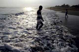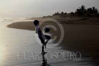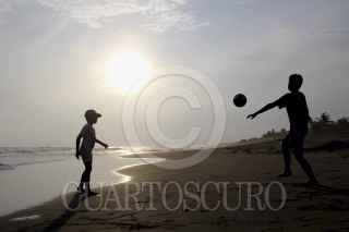PLAYA DEL SOL, TONALÁ, CHIAPAS, 20JULIO2014.- Niños juegan al atardecer fútbol en la playa "playa del sol" y disfrutan de sus vacaciones de verano. FOTO: ELIZABETH RUIZ /CUARTOCURO.COM