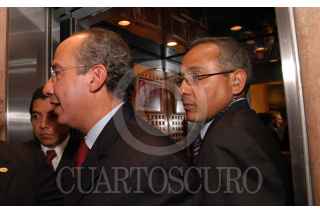 MÈXICO, D.F. 26ENERO2006.- Felipe Calderón Hinojosa, candidato del PAN a la presidencia de la República al termino de la reunión con los representares de la Camara de Comercio de Hispanos. FOTO:Miriam Sànchez/CUARTOSCURO.COM