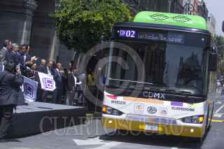 MÉXICO, D.F., 21JULIO2014.- Miguel Ángel Mancera, Jefe de Gobierno Capitalino durante el banderazo de salida del nuevo sistema de transporte de pasajeros CEDABUS el cual su ruta se realizara por la Central de Abastos. FOTO: ENRIQUE ORDÓÑEZ /CUARTOSCURO.COM